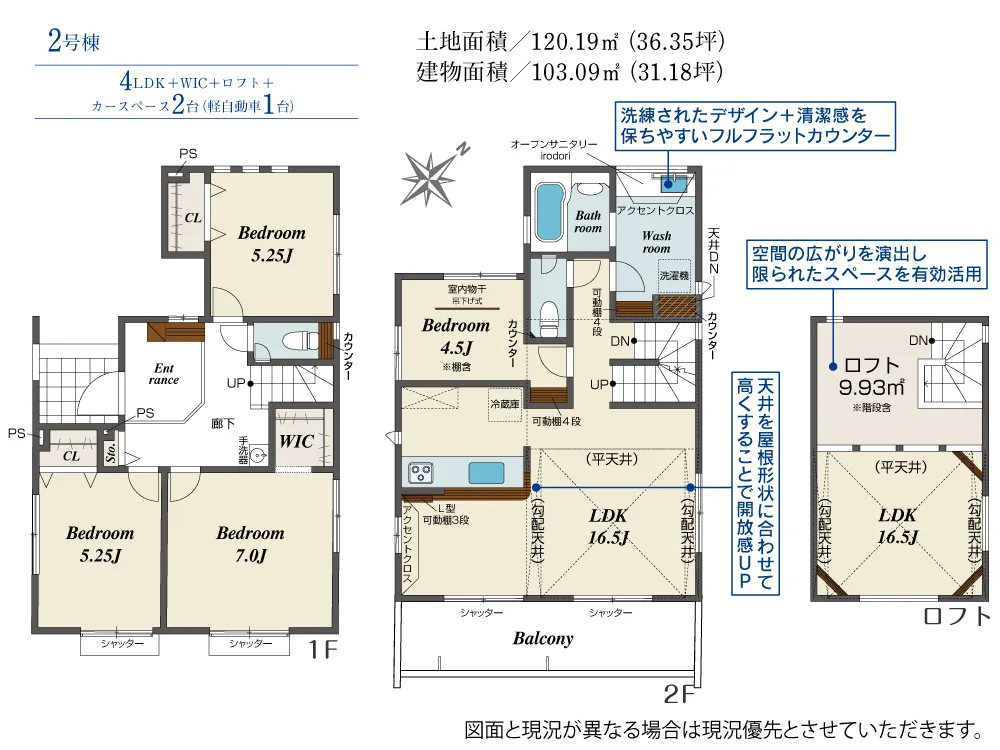 | 土地面積 | 120.18~120.19m² | 建物面積 | 97.50~103.09㎡ |