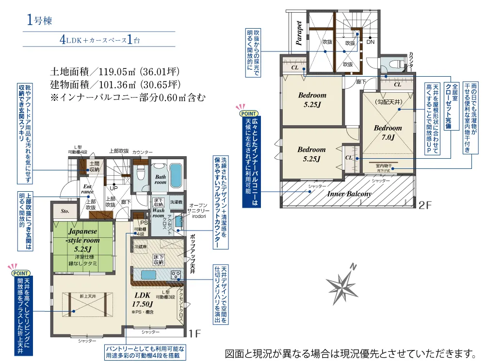 - 建築面積にインナーバルコニー部分0.60m2含む