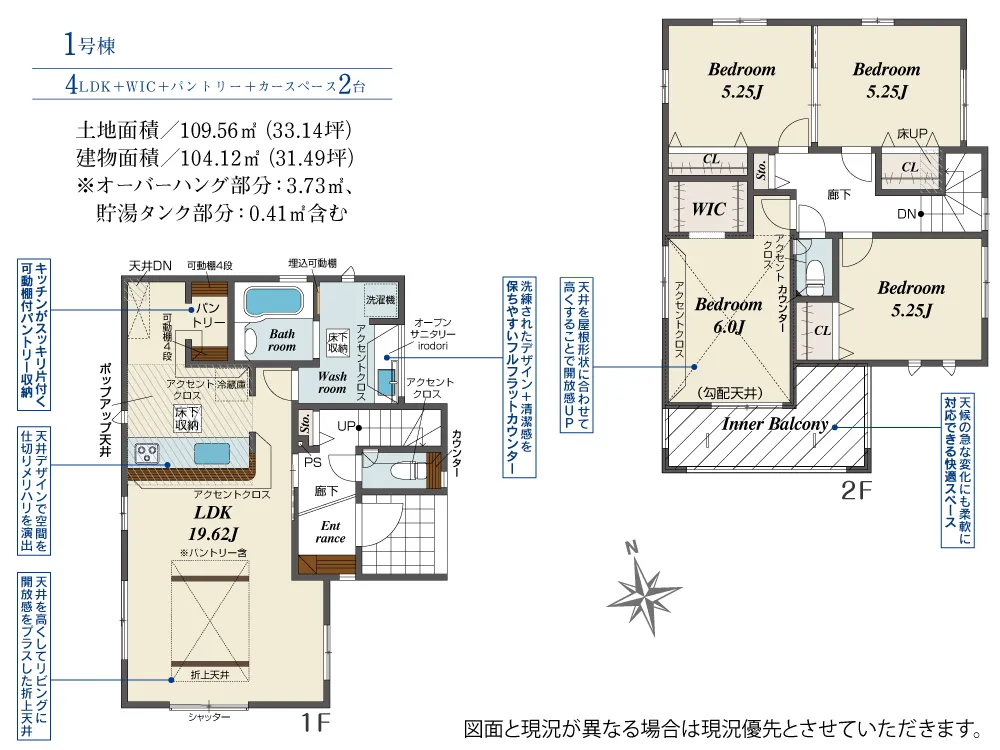 | 土地面積 | 109.56m² | 建物面積 | 104.12㎡ |