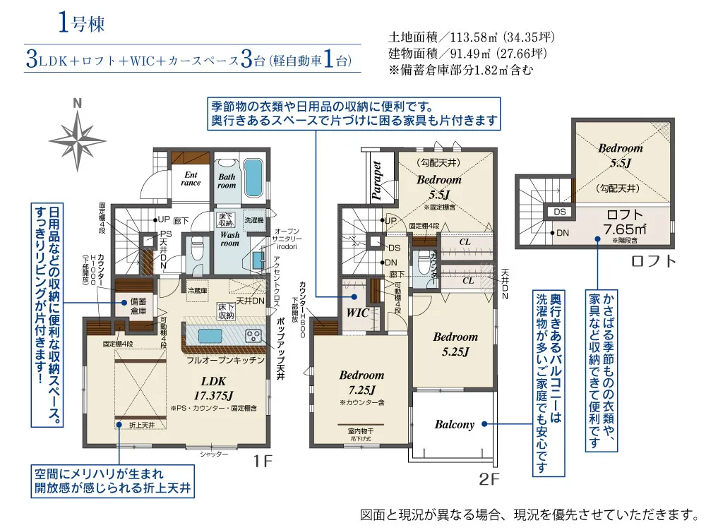| 建物面積 | 87.77~91.49㎡ | ||