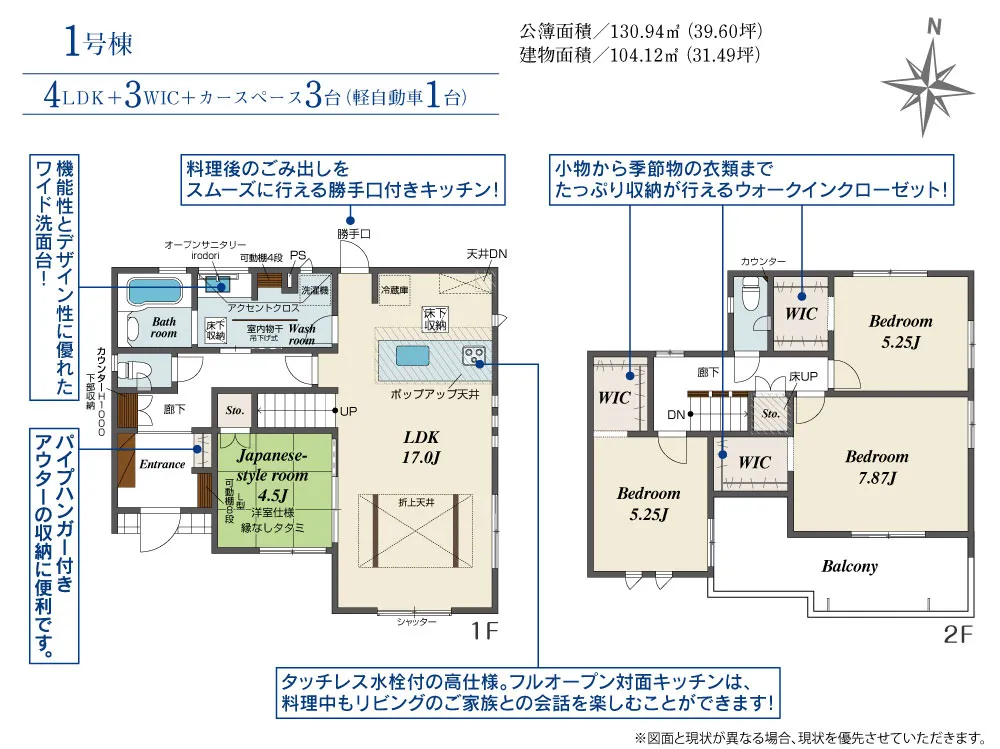 | 建物面積 | 104.12~108.06㎡ | ||