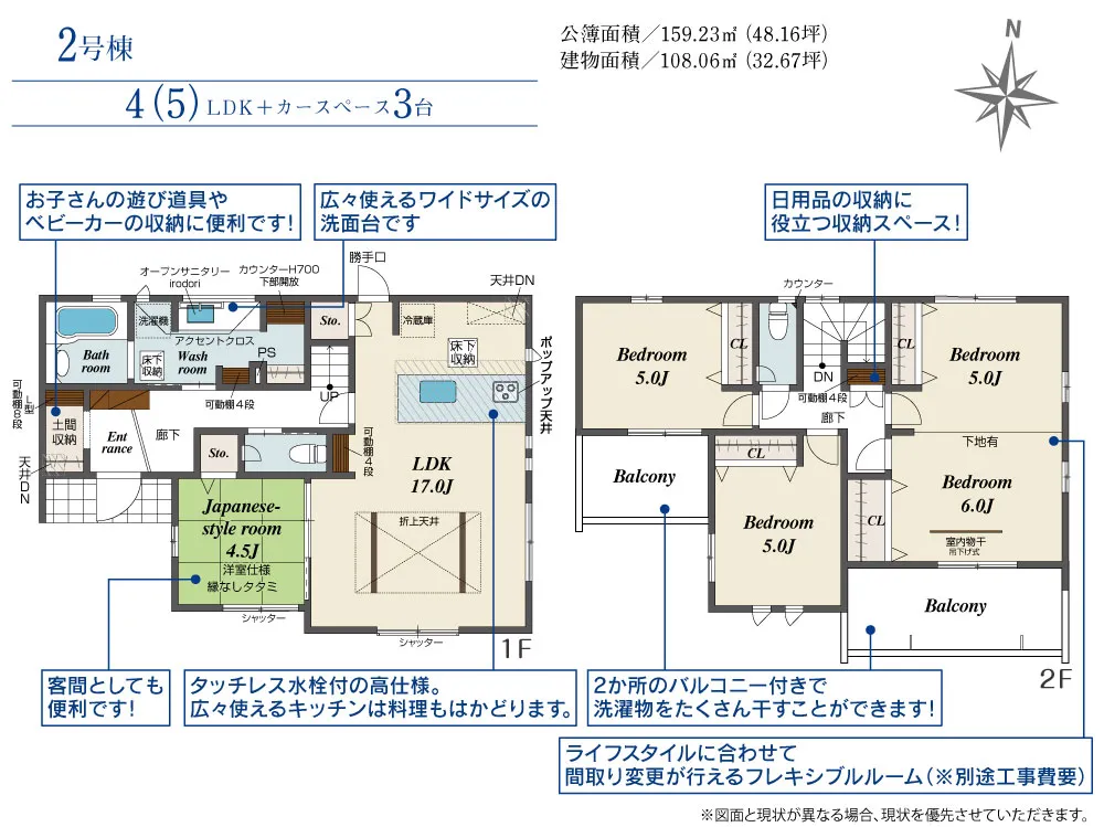 | 土地面積 | 130.94~159.23m² | 建物面積 | 104.12~108.06㎡ |