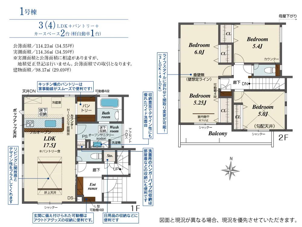 - 公簿面積:114.23m2(34.55坪)