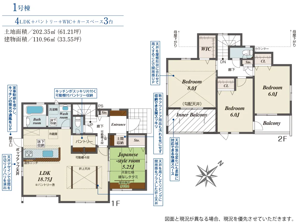| 土地面積 | 202.35m² | 建物面積 | 110.96㎡ |