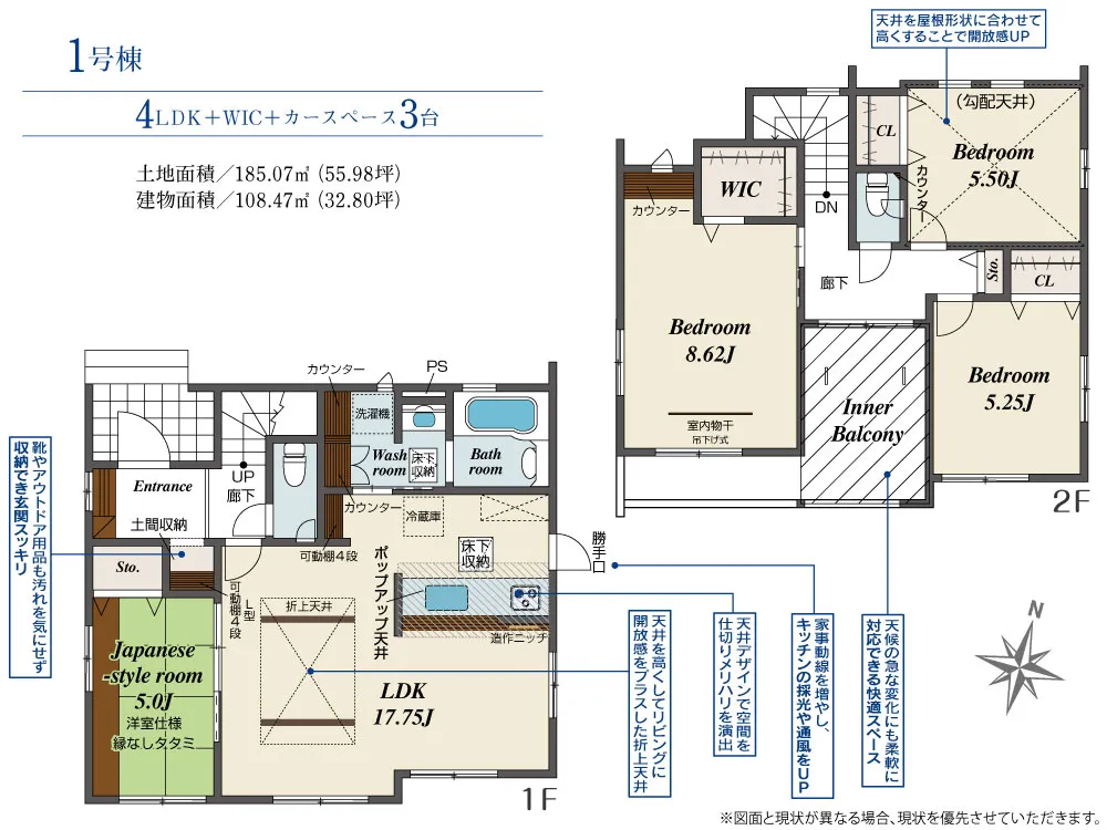 - 建物面積にインナーバルコニー部分7.24m2含む