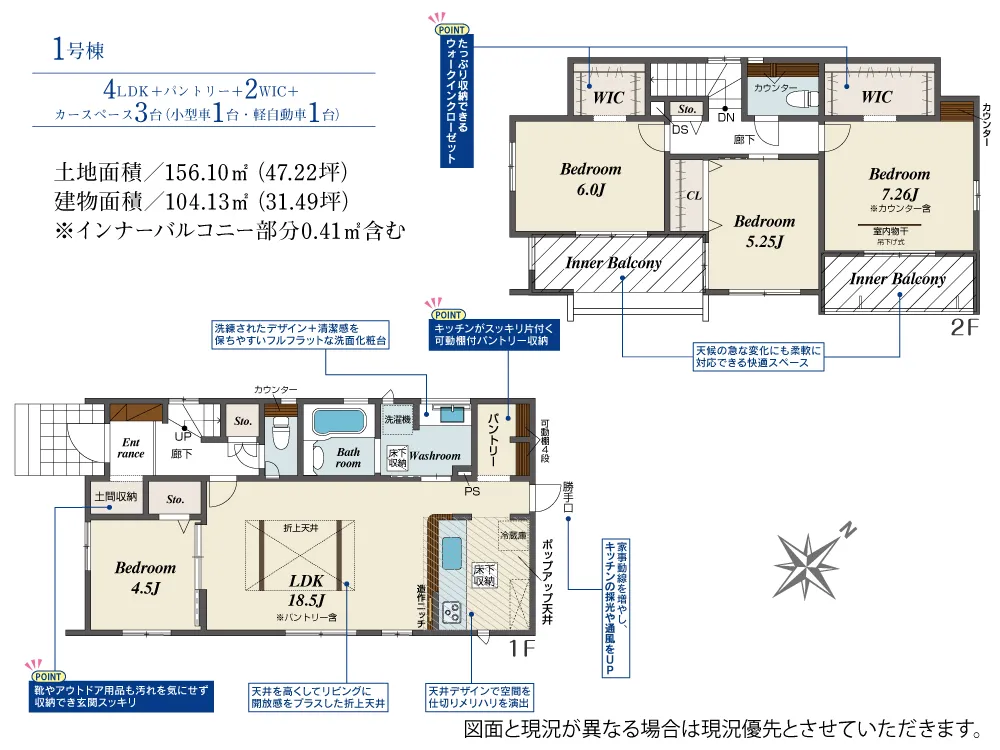 - 建物面積にインナーバルコニー部分0.41m2含む