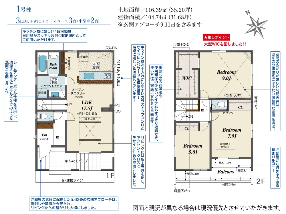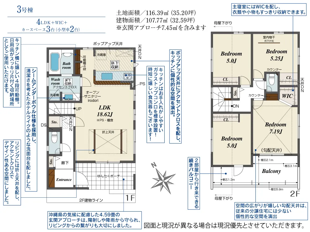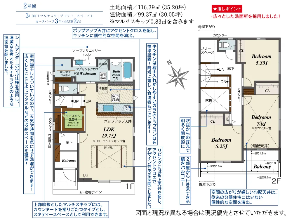 | 土地面積 | 116.39m² | 建物面積 | 99.37~107.77㎡ |