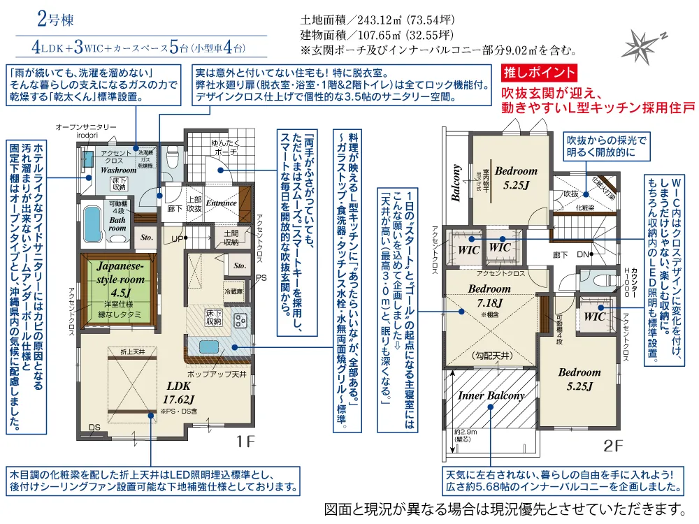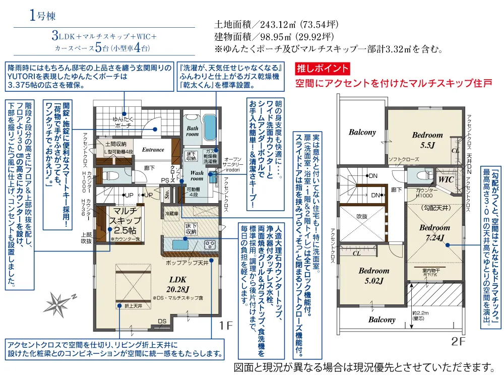 | 土地面積 | 243.12m² | 建物面積 | 98.95~107.65㎡ |