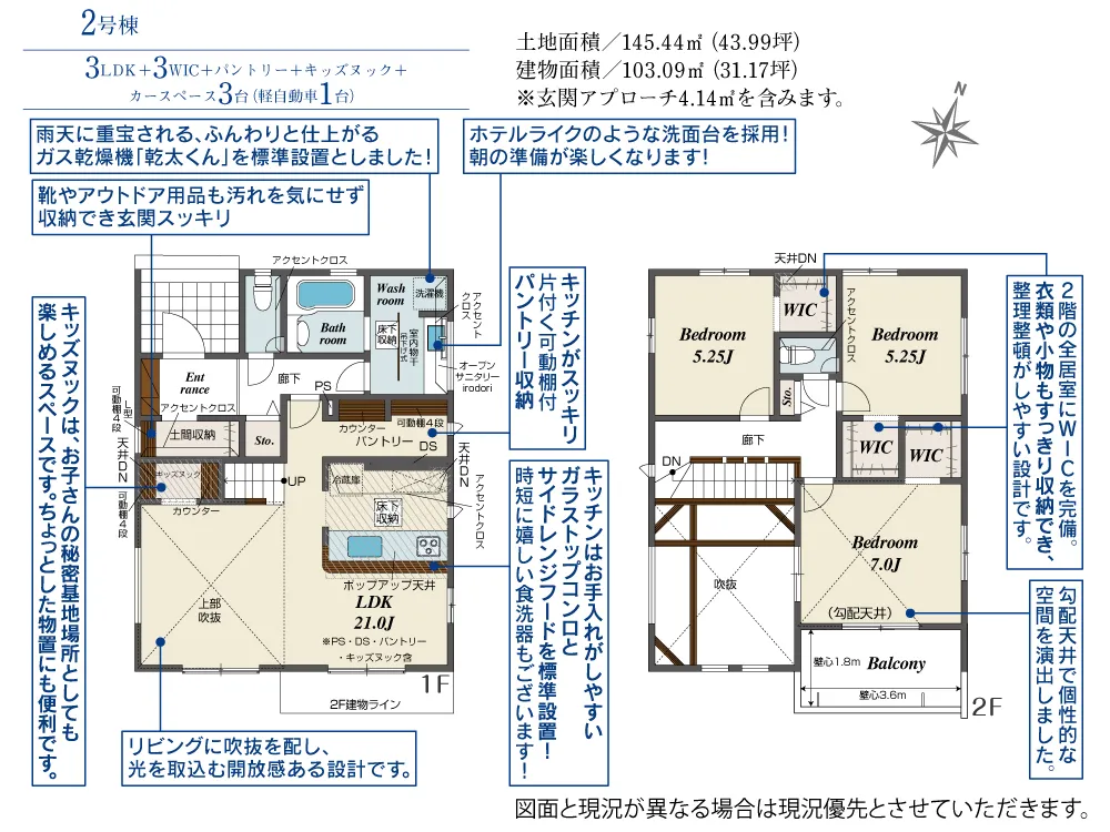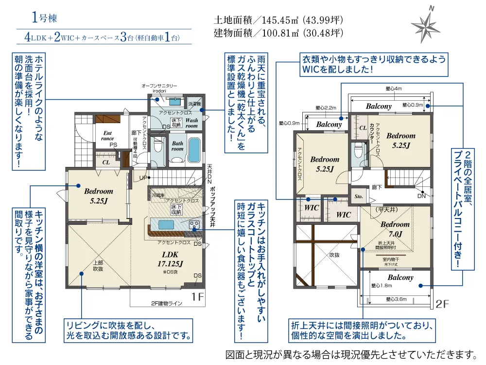 | 土地面積 | 145.44~145.45m² | 建物面積 | 100.81~103.09㎡ |
