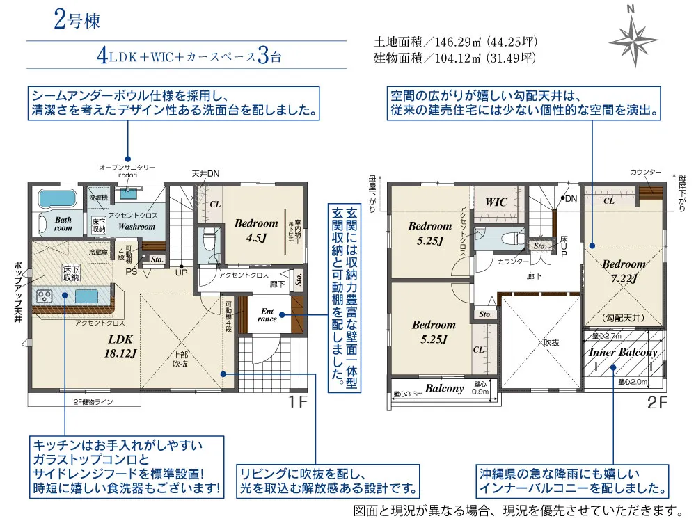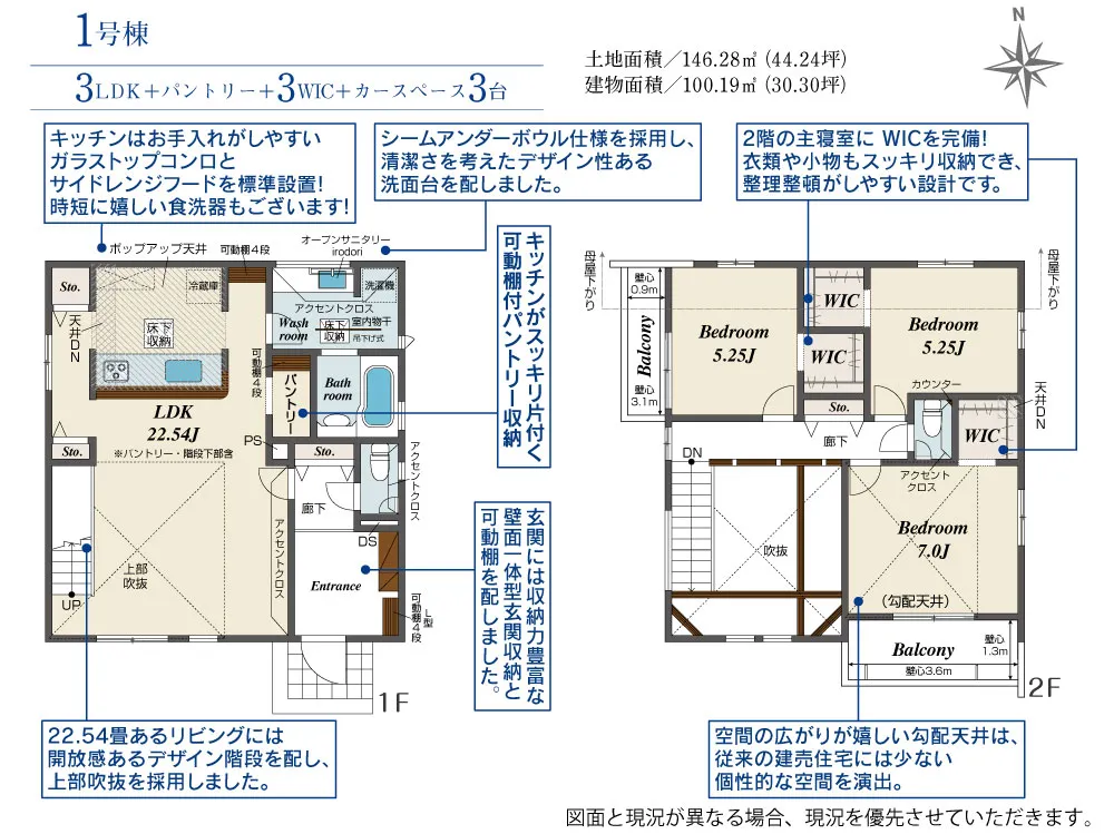 | 土地面積 | 146.28~146.29m² | 建物面積 | 100.19~104.12㎡ |