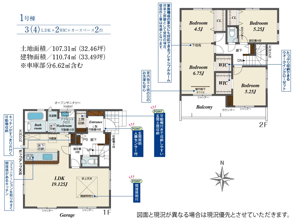 | 土地面積 | 107.31m² | 建物面積 | 110.74㎡ |