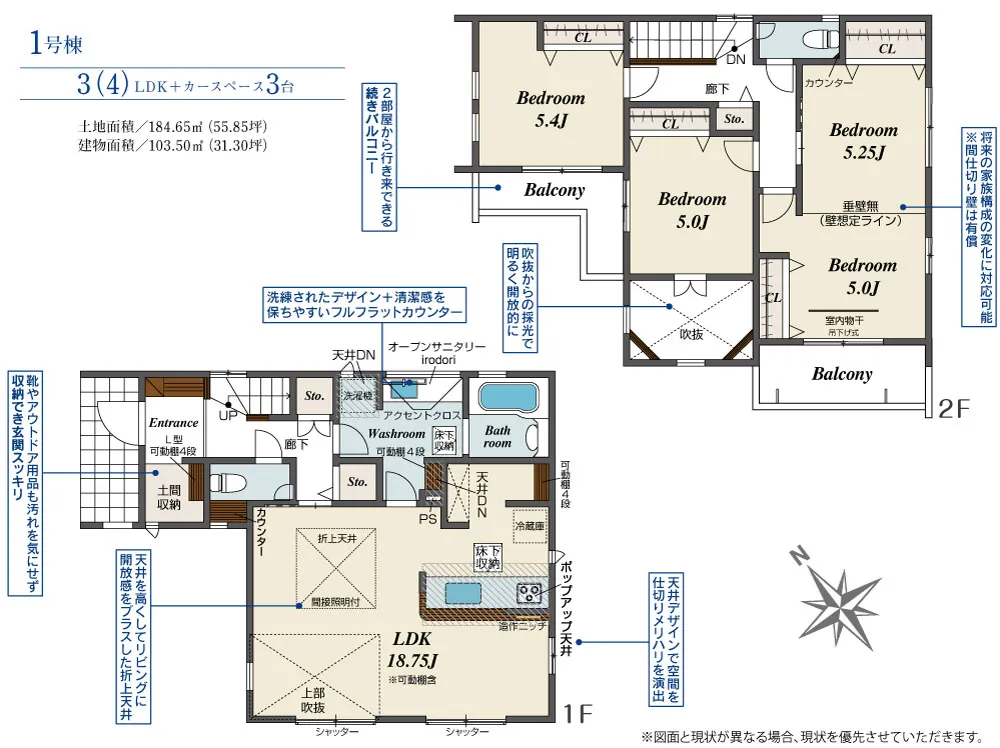 | 土地面積 | 184.65m² | 建物面積 | 103.50㎡ |