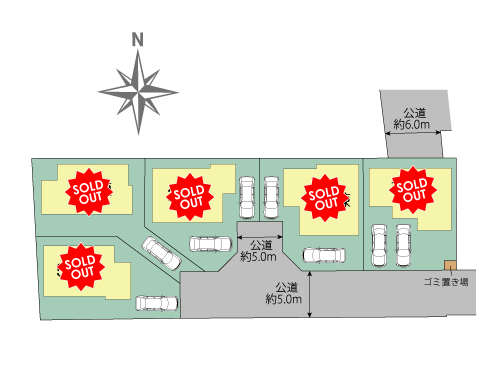 | 接道 | 1・2・3号棟:南側5m公道、4・5号棟:東側5m公道 | ||