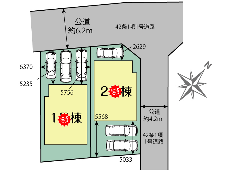 | 接道 | 北6.2m公道42条1項1号道路、東4.2m公道42条1項1号道路 | ||