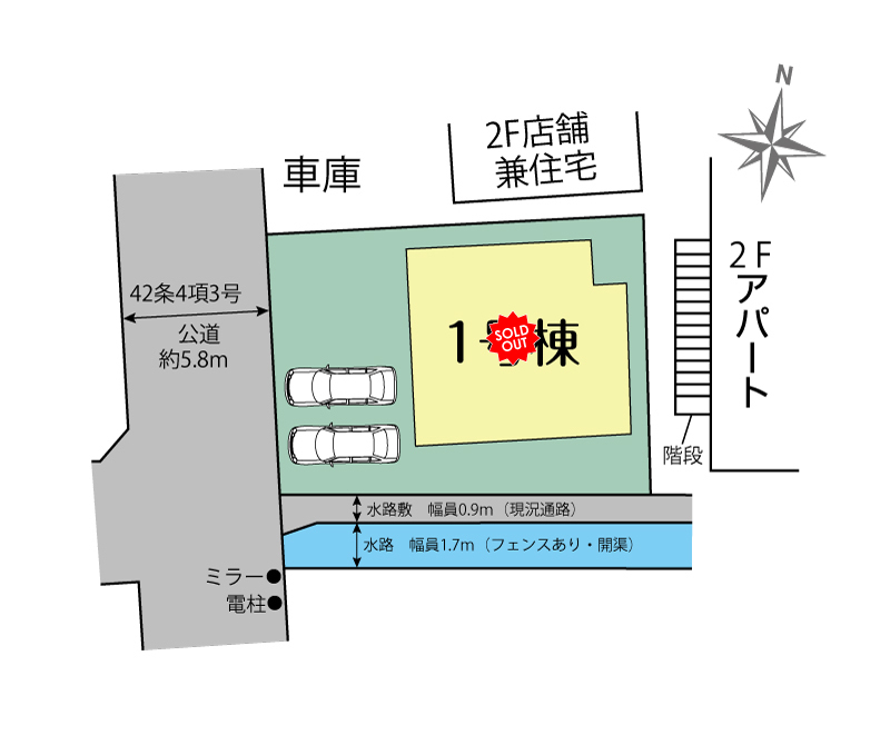 | 接道 | 西側公道幅員5.8m42条4項3号 | ||
