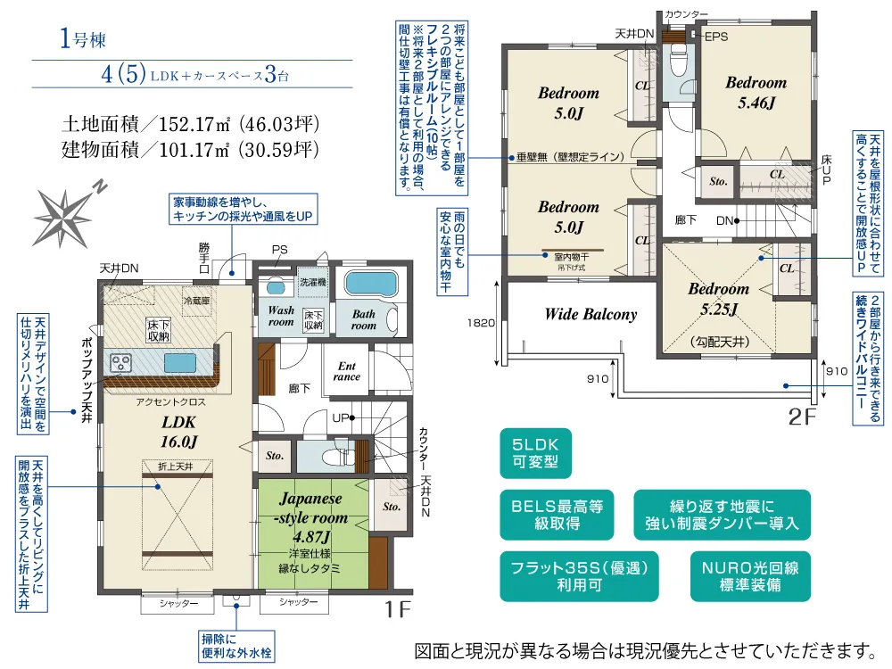 | 土地面積 | 152.17m² | 建物面積 | 101.17㎡ |