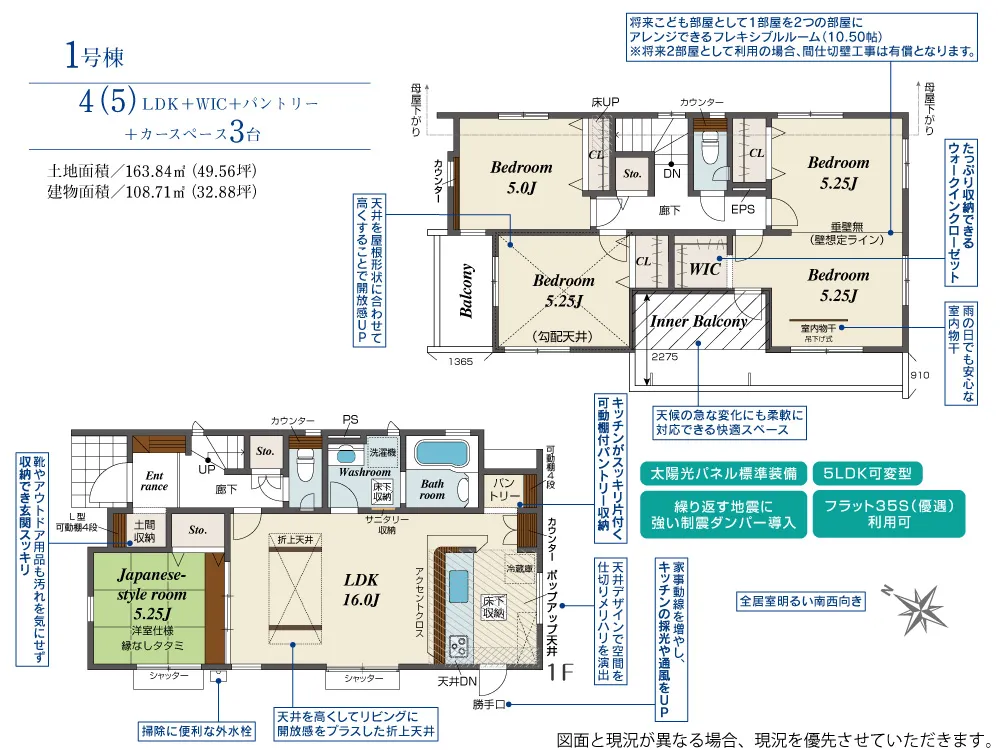 | 土地面積 | 163.84m² | 建物面積 | 108.71㎡ |