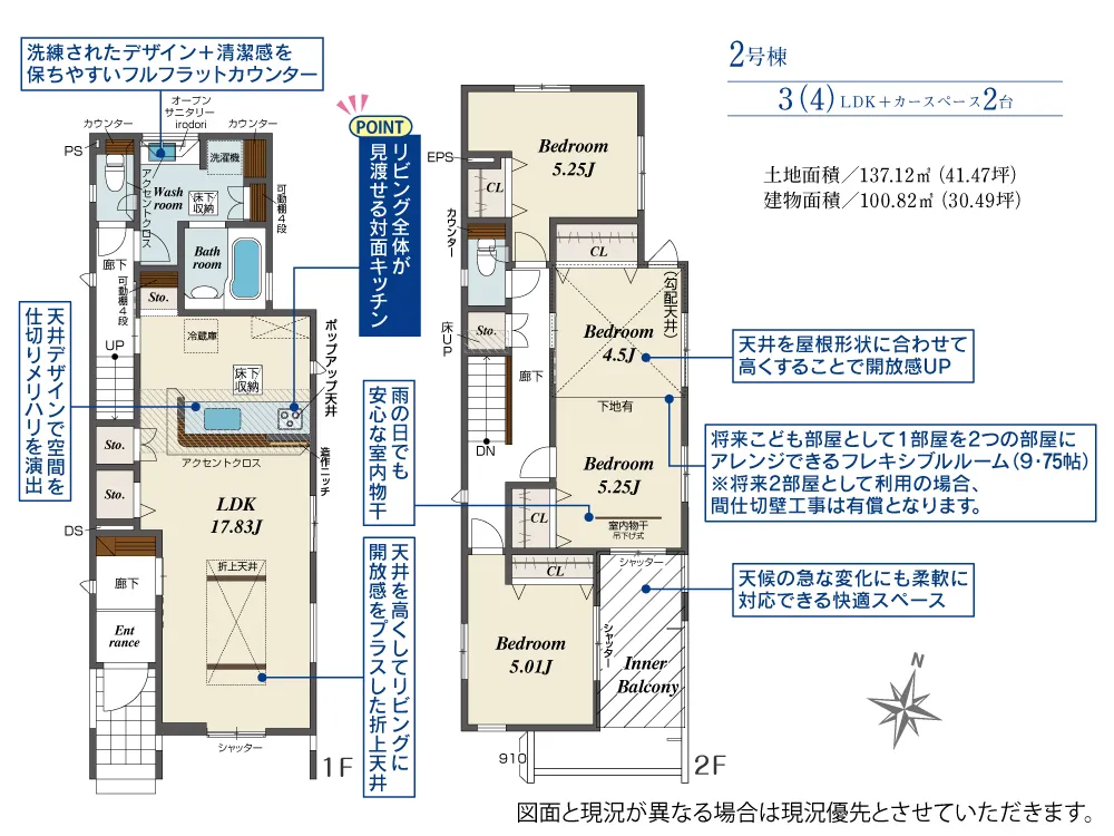 | 土地面積 | 110.76~137.12m² | 建物面積 | 100.82~102.47㎡ |