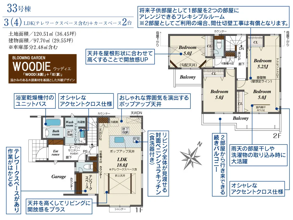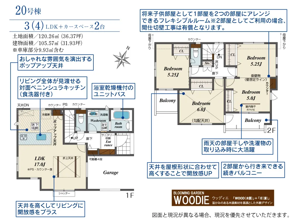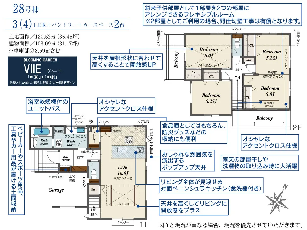 | 土地面積 | 120.26~132.61m² | 建物面積 | 95.22~108.88㎡ |