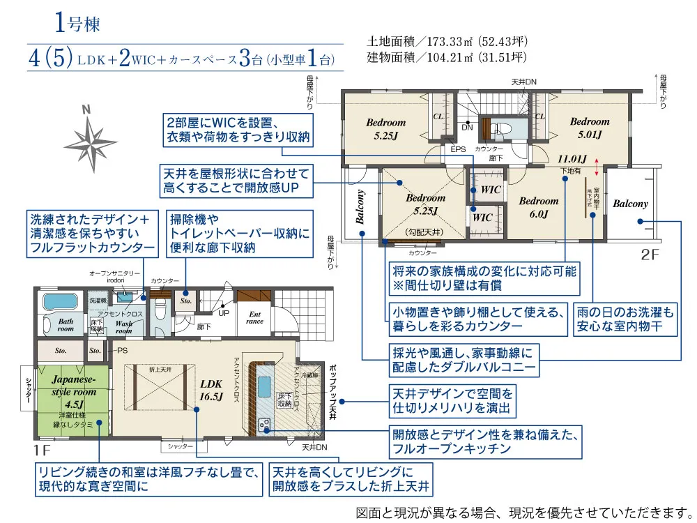 | 土地面積 | 172.92~173.33m² | 建物面積 | 103.50~104.21㎡ |