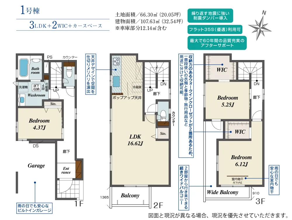 | 土地面積 | 66.30m² | 建物面積 | 107.63㎡ |