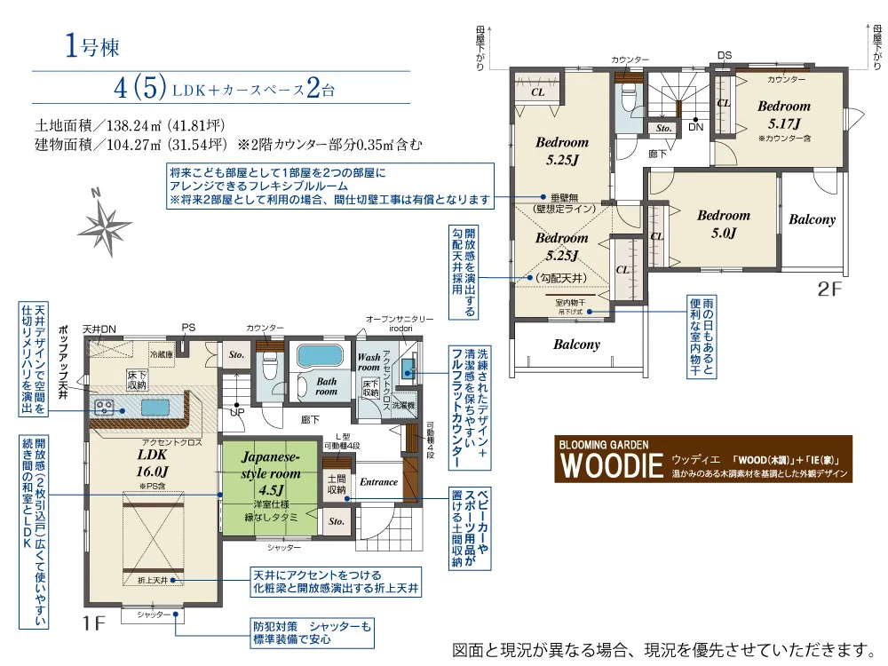 | 土地面積 | 138.24m² | 建物面積 | 104.27㎡ |