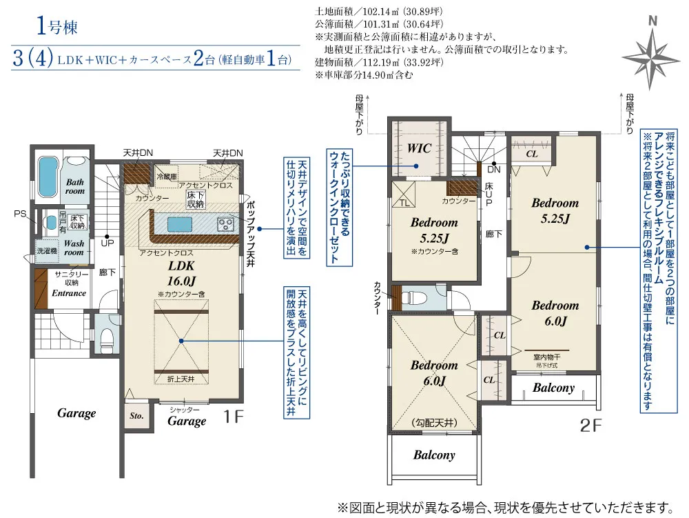 | 土地面積 | 102.14m² | 建物面積 | 112.19㎡ |