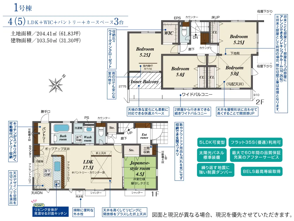 | 土地面積 | 204.41m² | 建物面積 | 103.50㎡ |