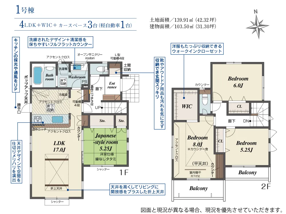 | 土地面積 | 139.91m² | 建物面積 | 103.50㎡ |