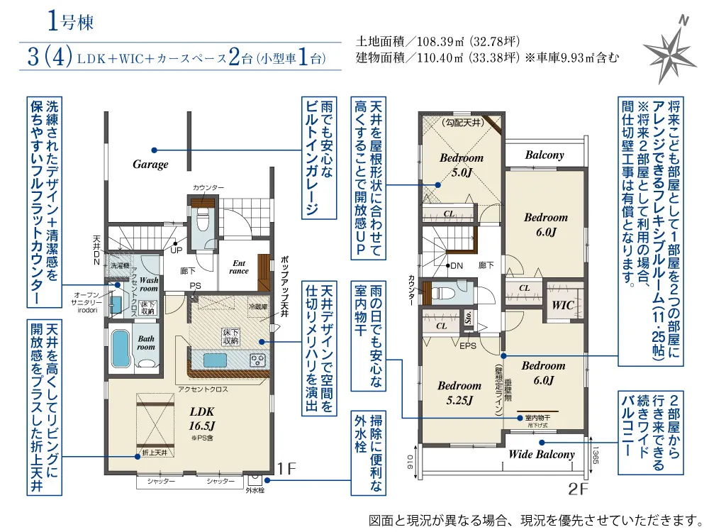 | 土地面積 | 90.02~108.39m² | 建物面積 | 104.18~110.40㎡ |