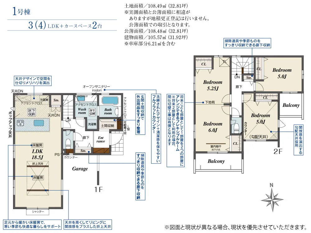 - 公簿面積:108.48m2(32.81坪)