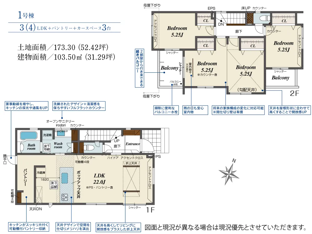 | 土地面積 | 173.30m² | 建物面積 | 103.50㎡ |