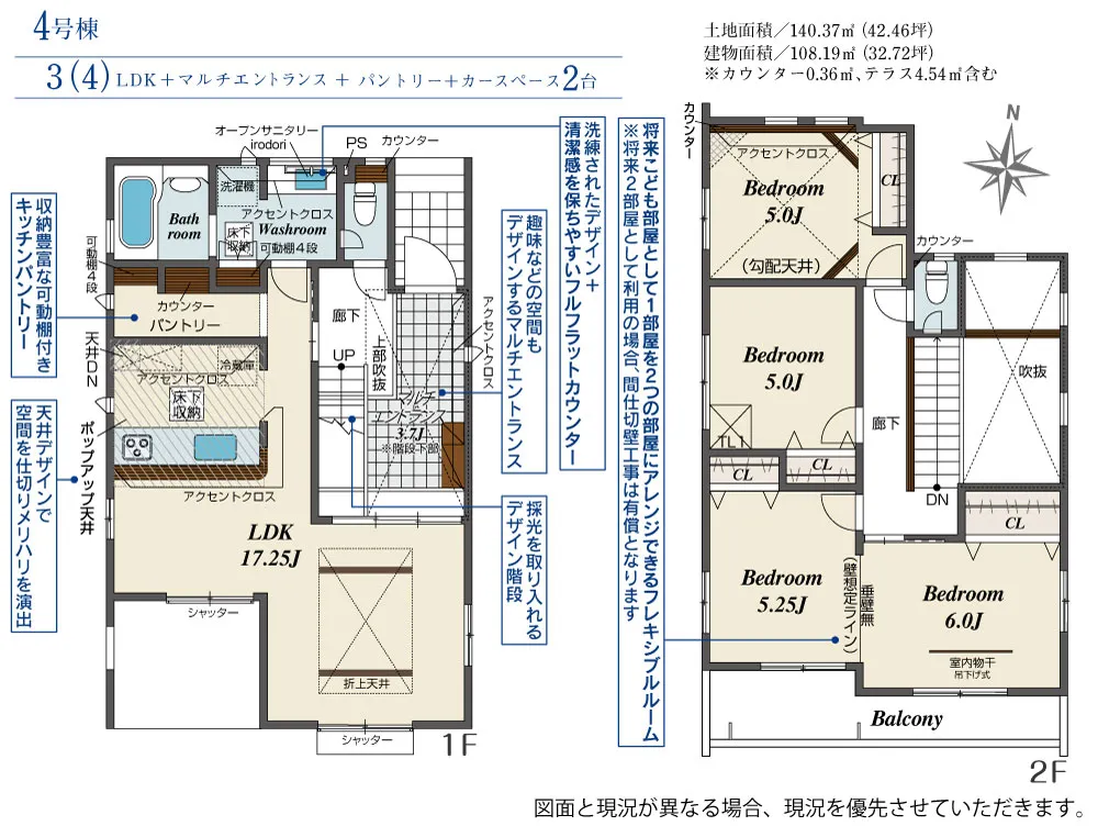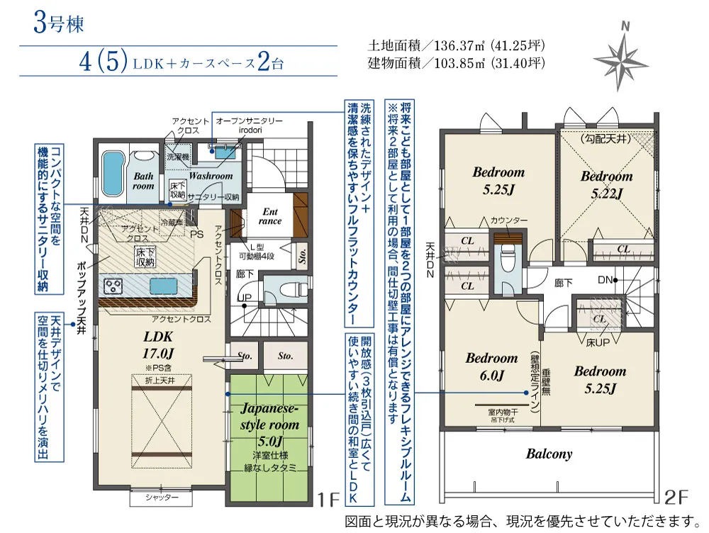 | 土地面積 | 131.61~140.37m² | 建物面積 | 103.85~108.19㎡ |