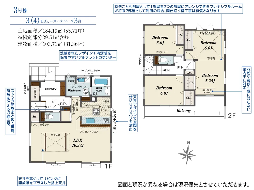 | 土地面積 | 154.14~184.19m² | 建物面積 | 103.50~110.40㎡ |