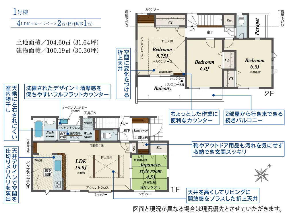 | 土地面積 | 104.60~106.46m² | 建物面積 | 95.63~100.19㎡ |
