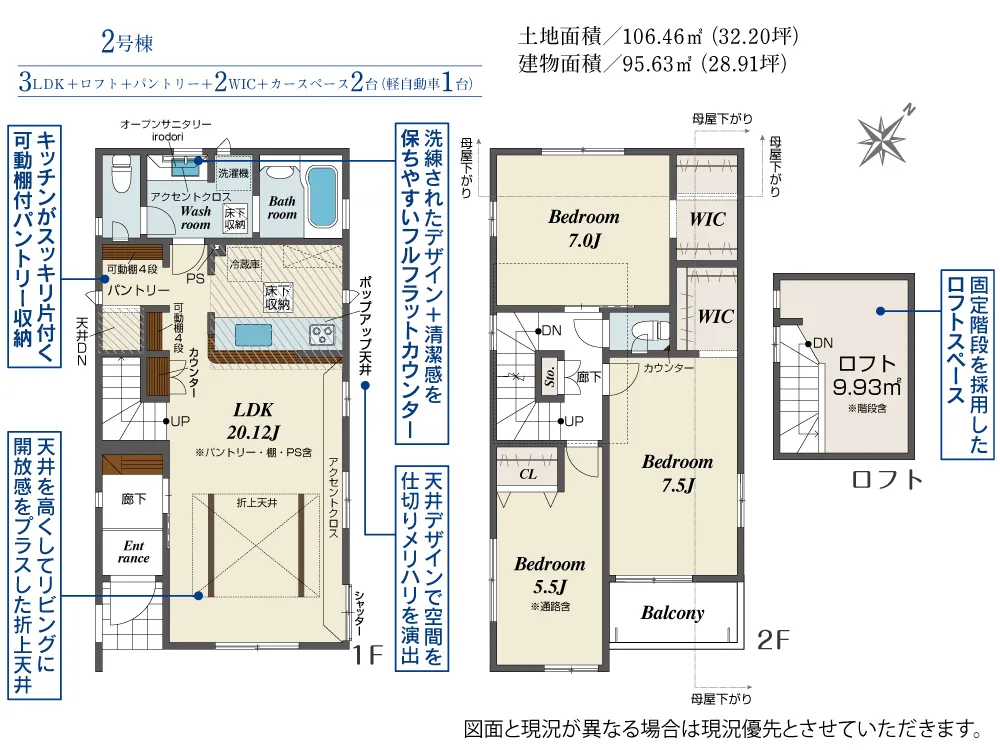 | 建物面積 | 95.63~100.19㎡ | ||