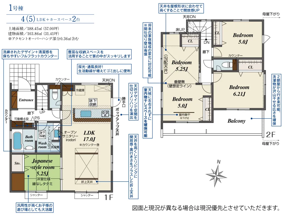 | 土地面積 | 188.45m² | 建物面積 | 103.86㎡ |