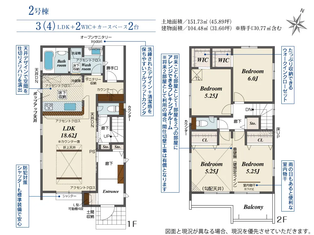 | 土地面積 | 147.52~153.28m² | 建物面積 | 103.71~107.52㎡ |