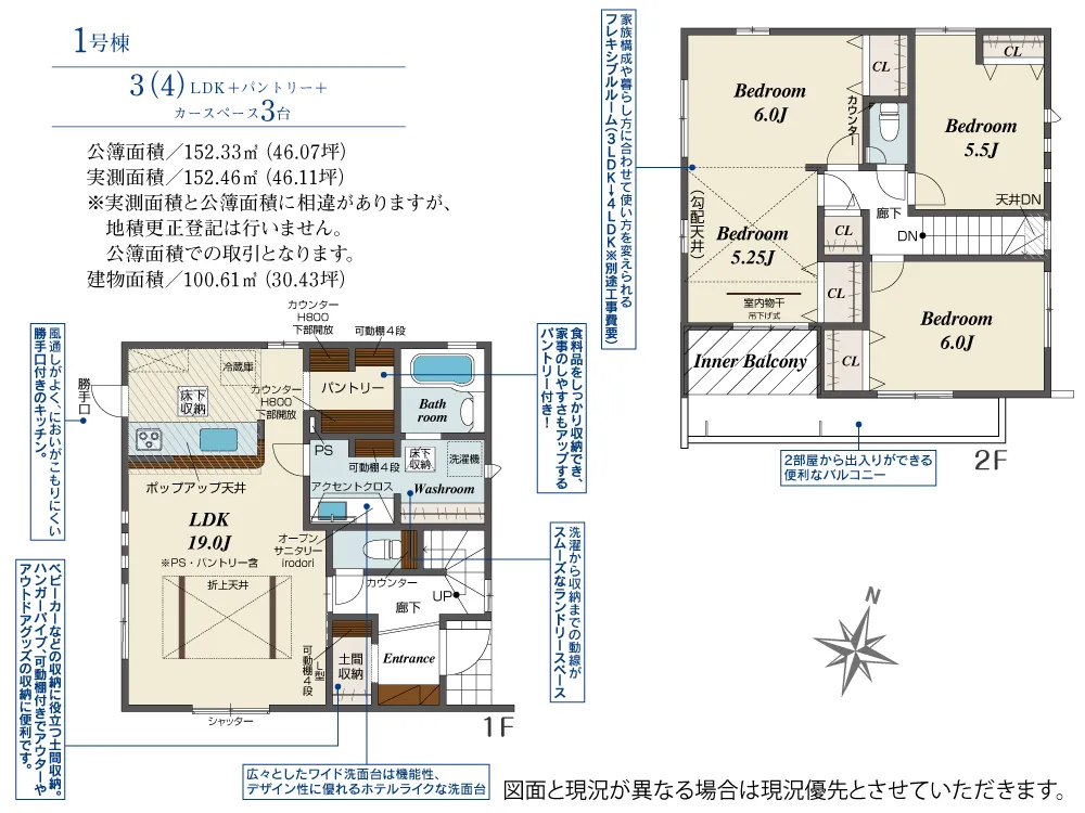| 土地面積 | 152.46m² | 建物面積 | 100.61㎡ |