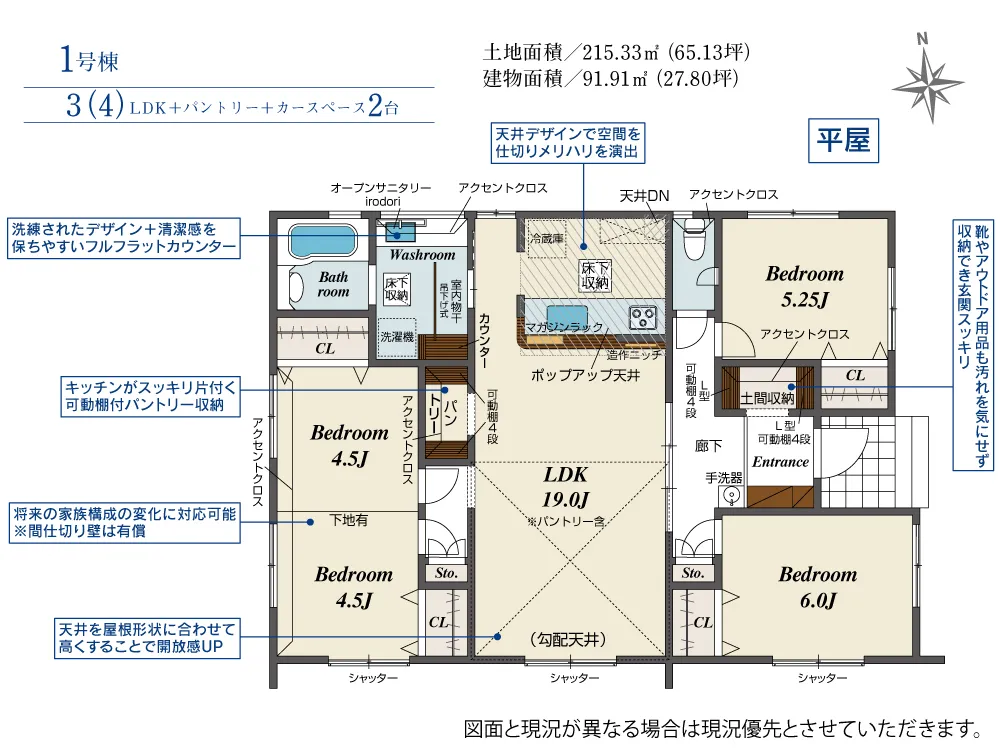 | 土地面積 | 215.33m² | 建物面積 | 91.91㎡ |