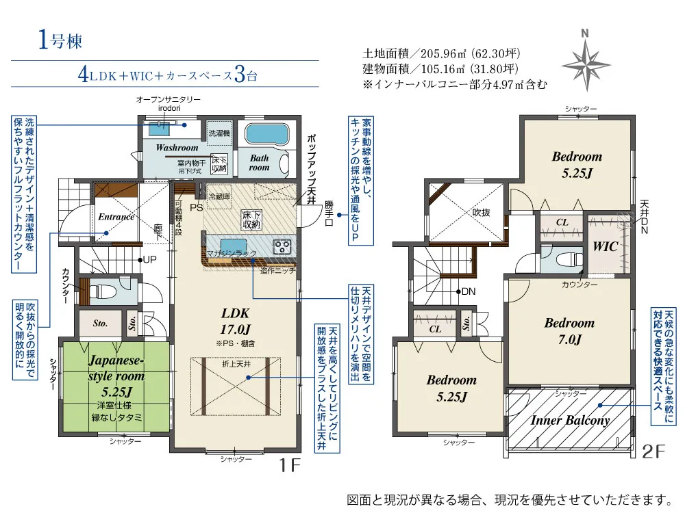 | 土地面積 | 205.96m² | 建物面積 | 105.16㎡ |
