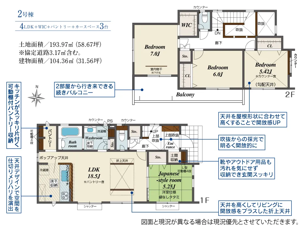 | 土地面積 | 193.97m² | 建物面積 | 104.36㎡ |