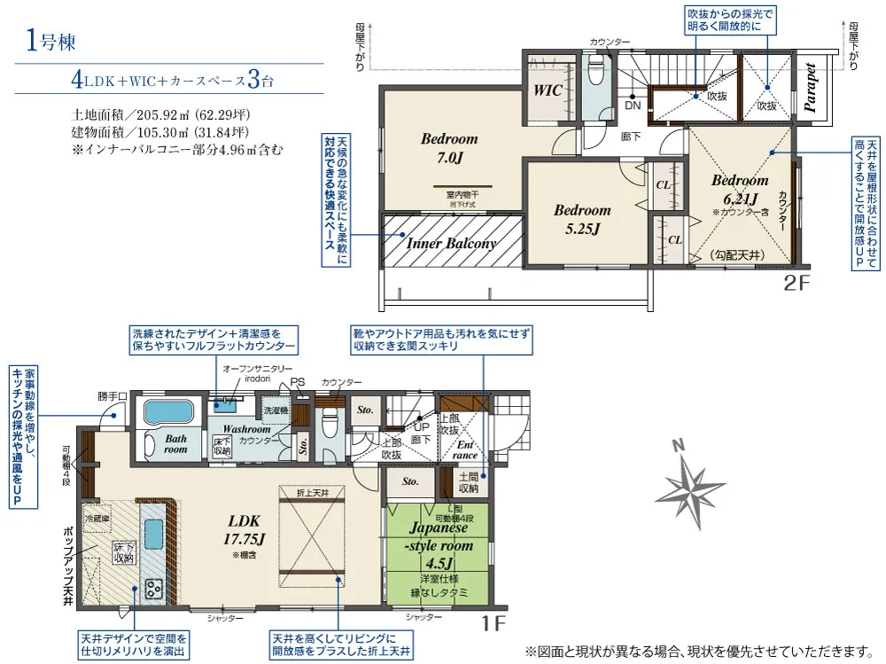 | 土地面積 | 205.92m² | 建物面積 | 105.30㎡ |