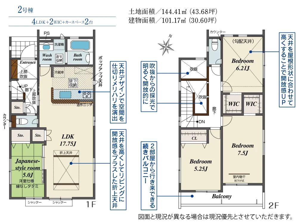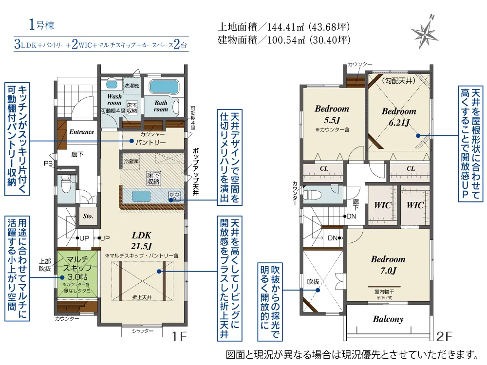 | 土地面積 | 144.41m² | 建物面積 | 100.54~101.17㎡ |