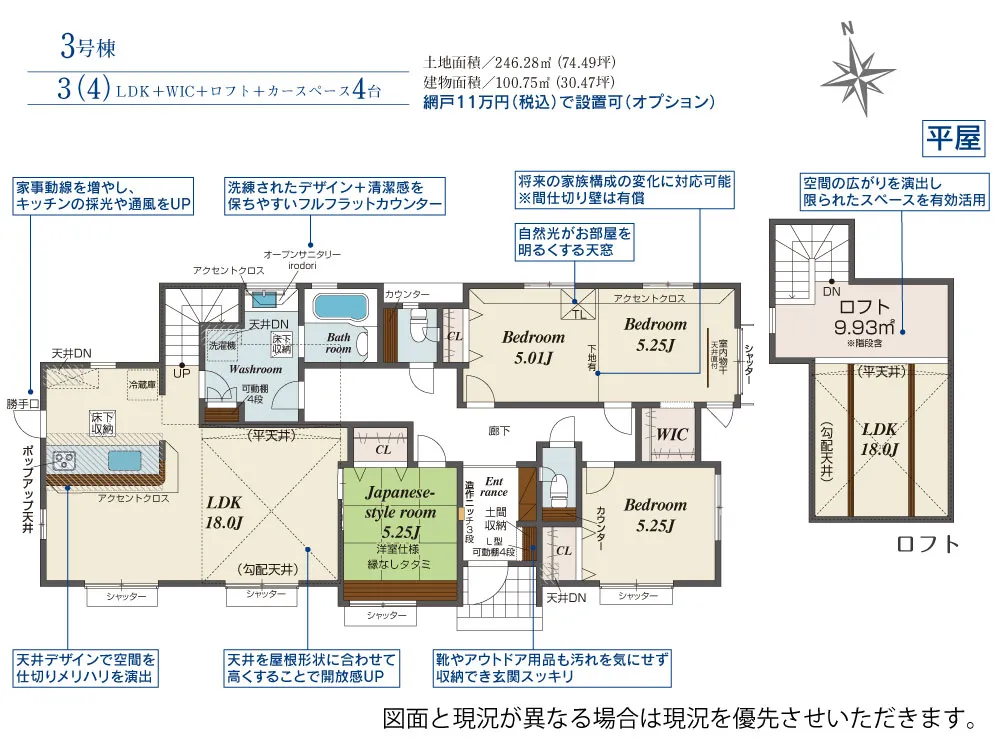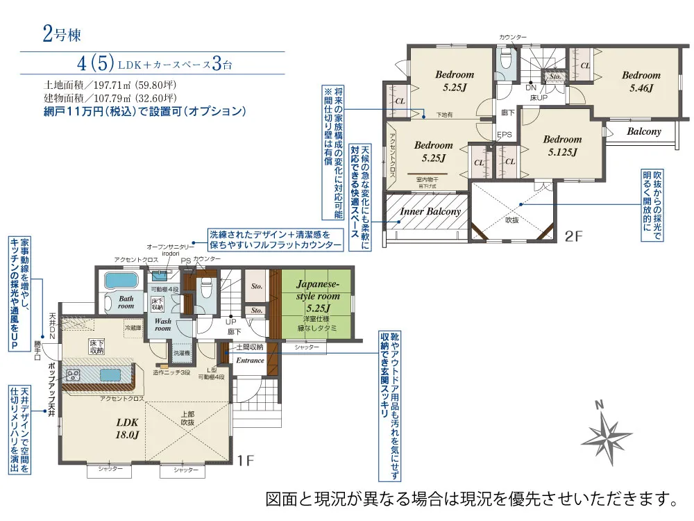 | 土地面積 | 197.78~246.28m² | 建物面積 | 100.75~107.79㎡ |