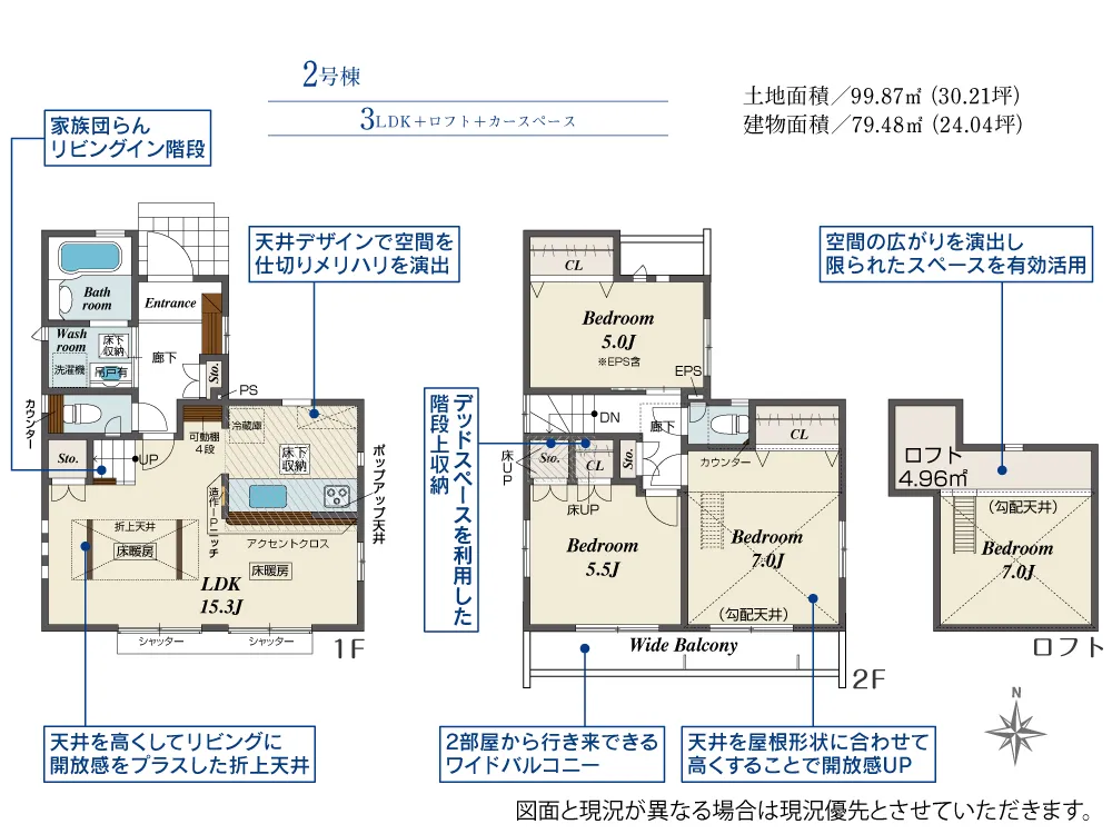 | 土地面積 | 99.87~104.13m² | 建物面積 | 79.48~83.84㎡ |