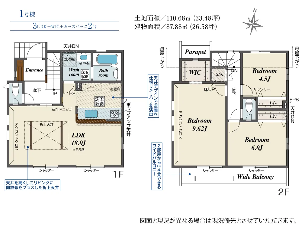 | 土地面積 | 110.68m² | 建物面積 | 87.88㎡ |