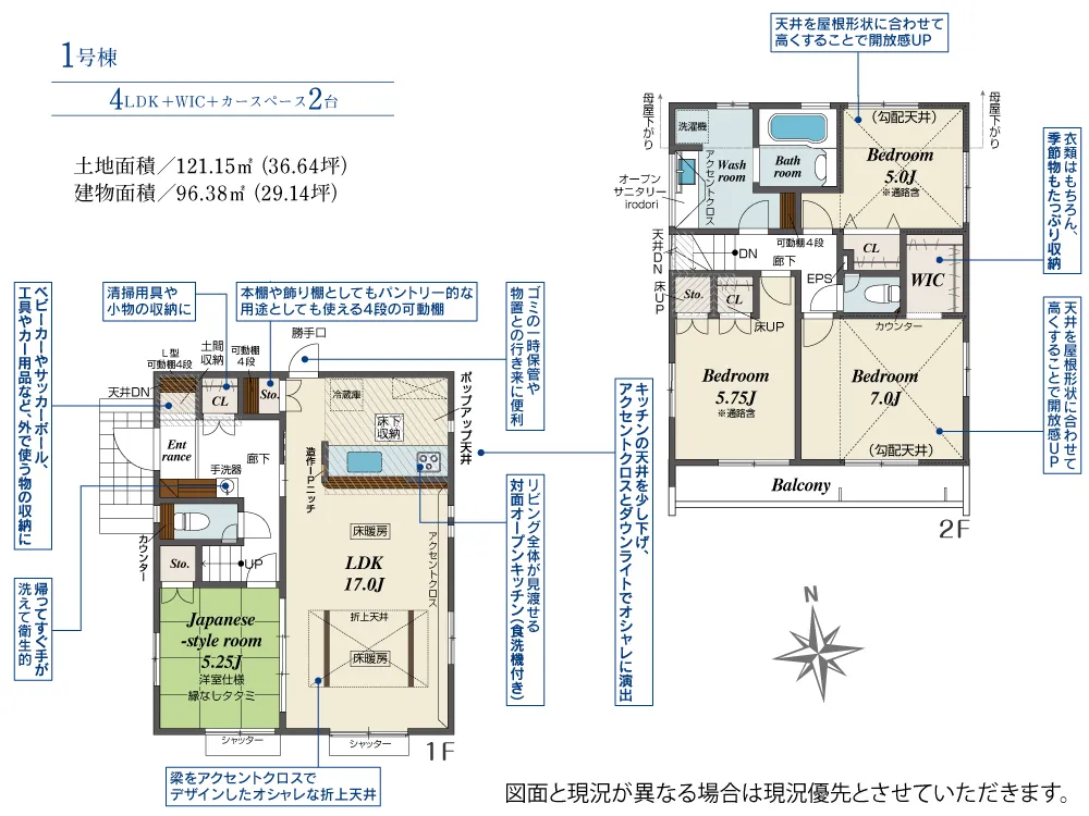 | 土地面積 | 121.15m² | 建物面積 | 96.38㎡ |