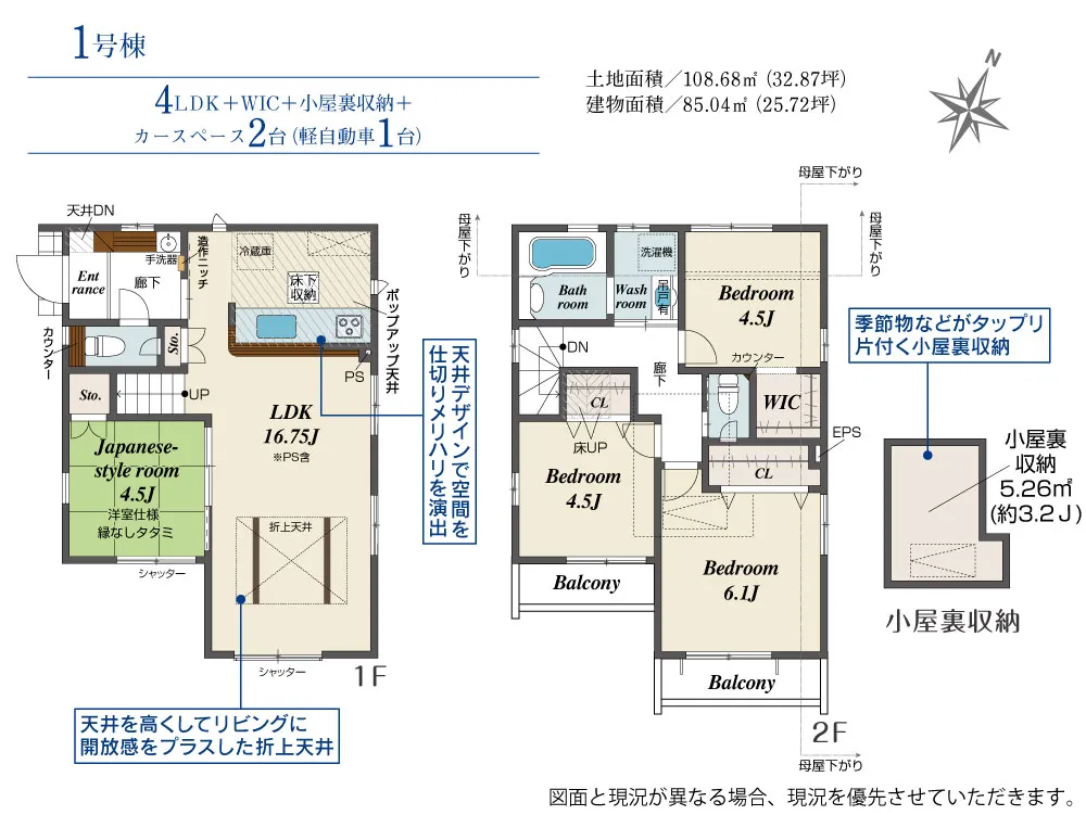 | 土地面積 | 108.68m² | 建物面積 | 85.04㎡ |