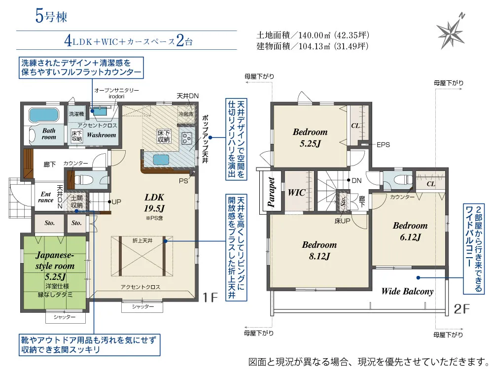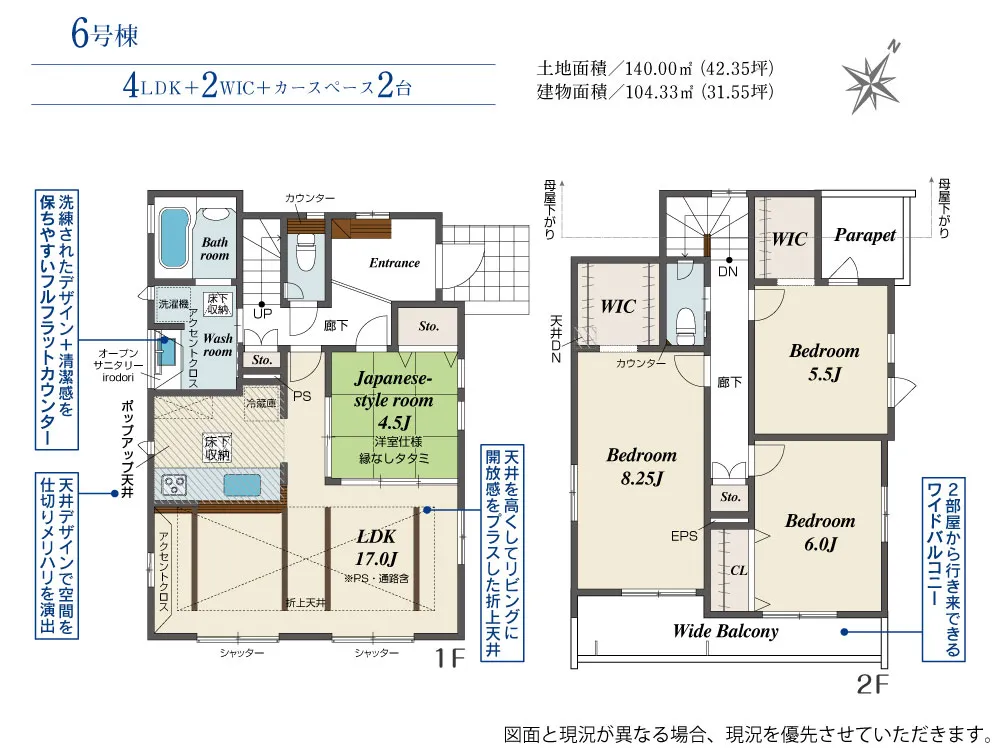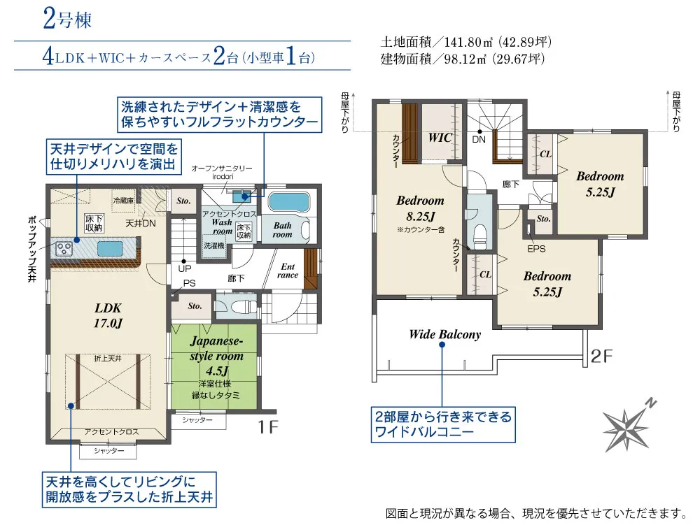 | 土地面積 | 130.00~141.80m² | 建物面積 | 98.12~104.33㎡ |
